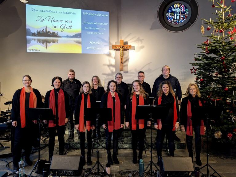 Die Gruppe "Voices for Christ" besteht aus 20 jugendlichen und erwachsenen Sängerinnen und Sängern mit Band und wird geleitet von der Musikerin und Musikpädagogin Ruthild Eicker.